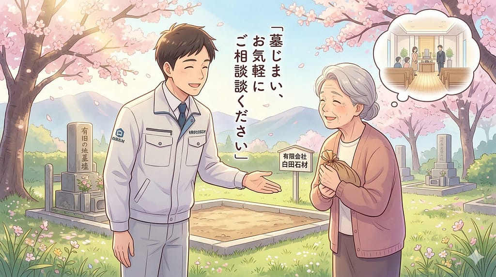 有限会社白田石材では、地域の皆様の日頃のご愛顧に感謝を込めて**「春彼岸感謝セール」**を3月15日〜4月5日まで開催いたします。 お墓は、ご家族の歴史を刻み、想いを繋ぐ大切な場所です。だからこそ、今あるお墓のメンテナンスから将来を見据えたご相談まで、石の専門店として皆様の「安心」を全力でサポートさせていただきます。